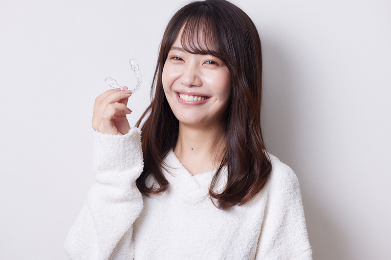 マウスピース矯正は、患者様ご自身で装置を取り外すことが可能です。そのため、お食事や歯磨きの際に装置を取り外せるので、口腔内を綺麗な状態に保ちやすくなります。また、特別な行事や写真撮影の際には一時的に装置を外せるのもメリットです。