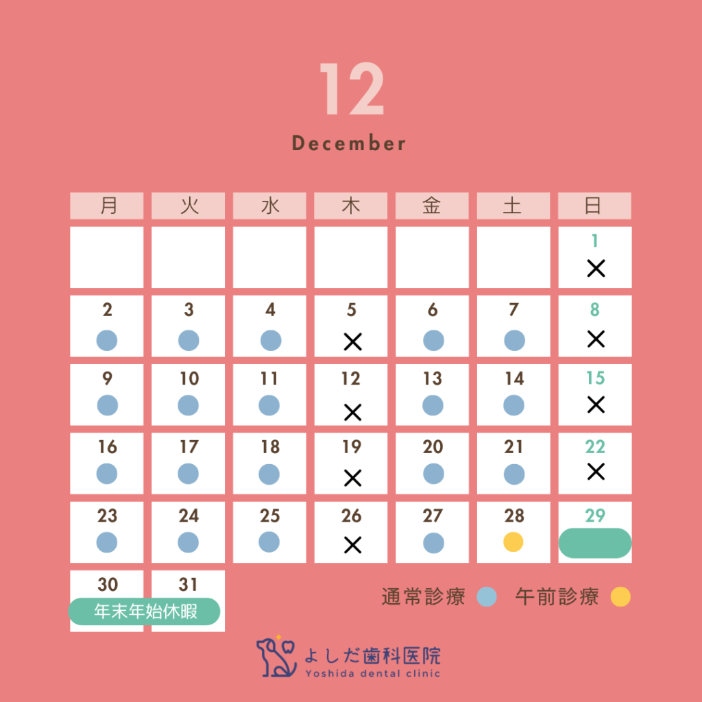 12月28日(土)は午前診療となり、本年の診療を終了させていただきます。