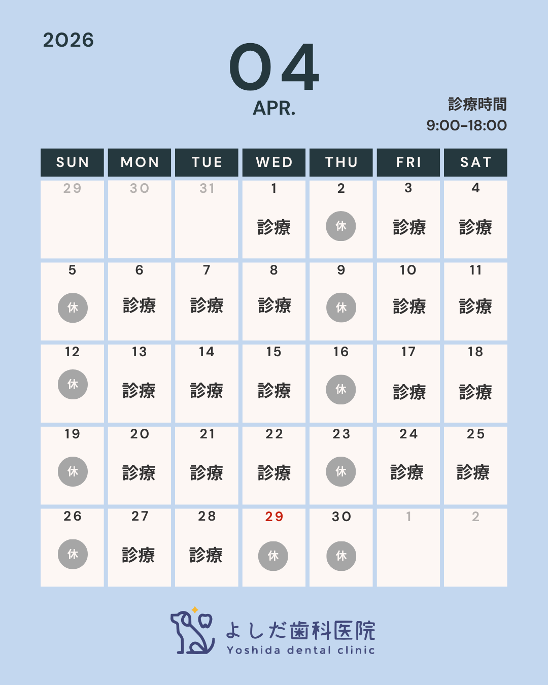 4月の診療日のお知らせ